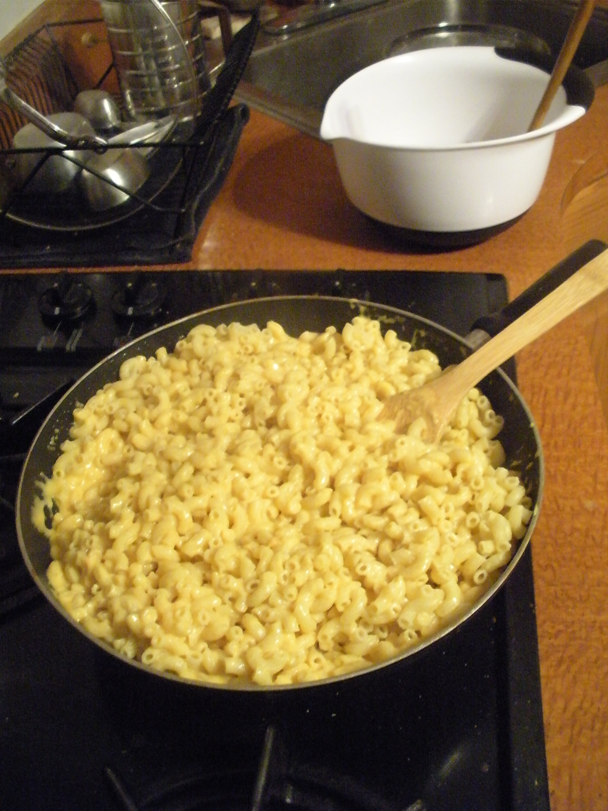 The recipe then says to remove from the heat and stir in salt and cheese. I missed part of that, and stirred in the cheese still on the stove. It…still came out gooey and nice, so I’d say it’s not the hugest deal?