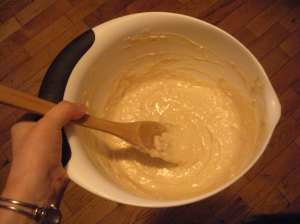 In a large bowl, sprinkle yeast over your warmed milk and let it sit while you grab the next several ingredients. Stir in the butter, sugar, vanilla, and one cup of the flour. Then add the salt, nutmeg, and one of the zest piles.