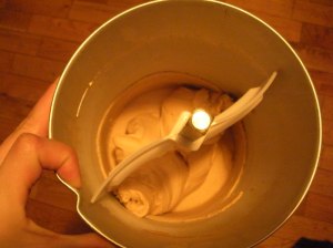 Freeze mixture in an ice-cream maker according to manufacturer’s instructions.