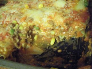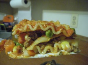 It’s kind of everything good about lasagna (pasta, sauce, and the cheese on top) without the gross ricotta… You don’t taste the veggies much so it should be fine with him too! (although, I mean, you can see them, but I don’t think he’s that big a baby…)