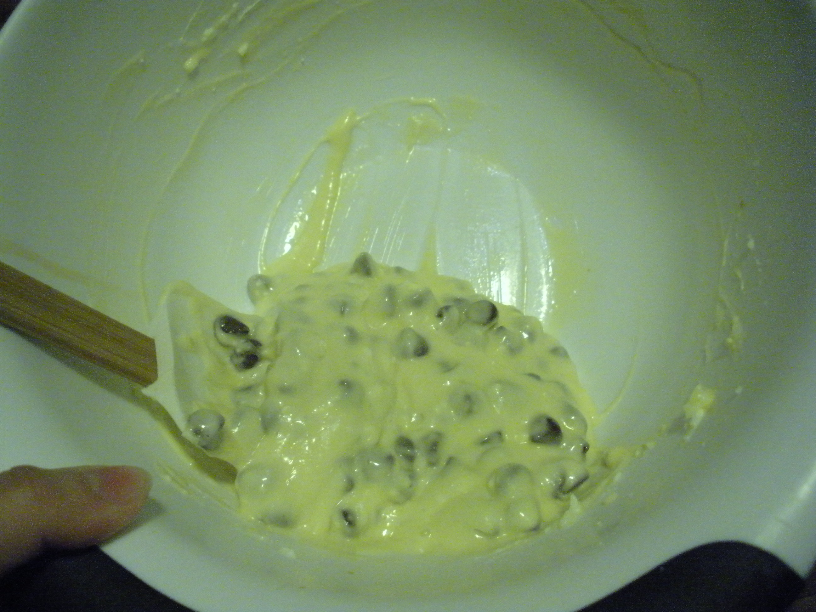 Preheat the oven to 350 degrees. Beat the cream cheese, sugar and salt until smooth. Beat in egg and vanilla. Fold in chips and set aside.