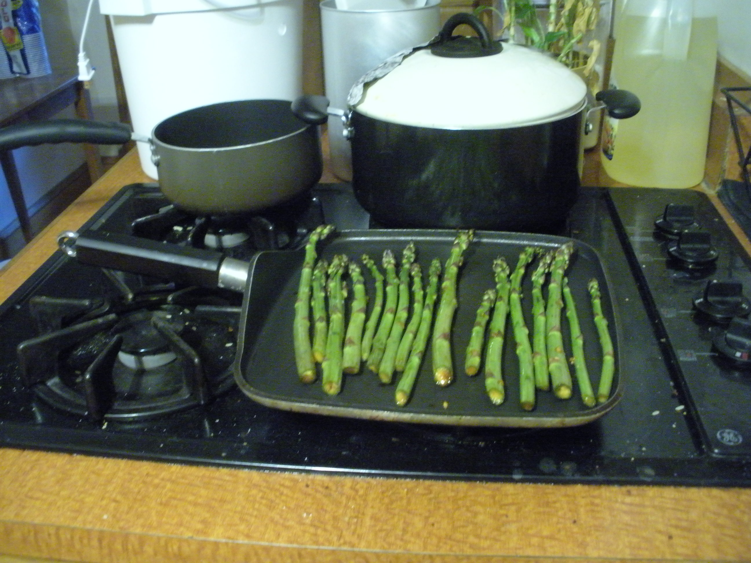 Throw it in the oven for 55 minutes, get some rice cooking as well, and take a quick nap. Or make a side? I marinated some asparagus in soy sauce with garlic for a few hours earlier that day, and just cooked that on a flat pan towards the end of the 55 minute, but feel free to do something fancier.