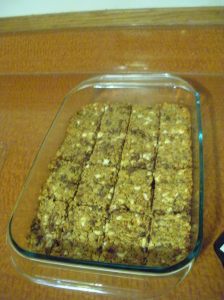 Bake for 10 minutes, press down on the granola again, then bake another ten minutes. Press down again and cool ten minutes. I may be a bit crazy about the pressing down, I just really don’t want my granola bars falling apart all over me. After ten minutes of cooling, cut into bars, but leave in pan.