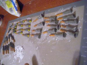 I made a ton of limbs, since you need 3 each for each cupcake, plus I expected breakage (which happily never happened).