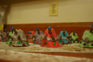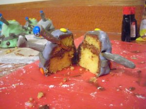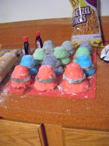 A little bit more water to attach some more M&Ms for the bumps, and they were finished. Yay!