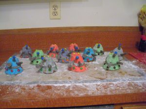 I left them alone for several hours to allow the frosting to dry/harden up a bit, and then started working on the various Dalek limbs.