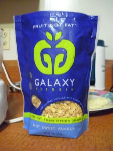 I also got granola without nuts, since I hate nuts. Safeway only had one single kind of granola without nuts, which I should have known was going to be gross when it was called “Not Sweet Vanilla.” Booooring.