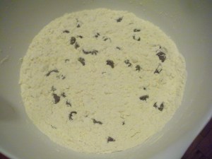 Combine flour, chocolate chips, baking soda, and lemon zest.