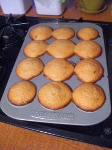 The recipe said to just grease a muffin tin… I wish I had lined it, as some of my muffins stuck and came apart a bit when I pried them out. So, spoon into a lined muffin tin.