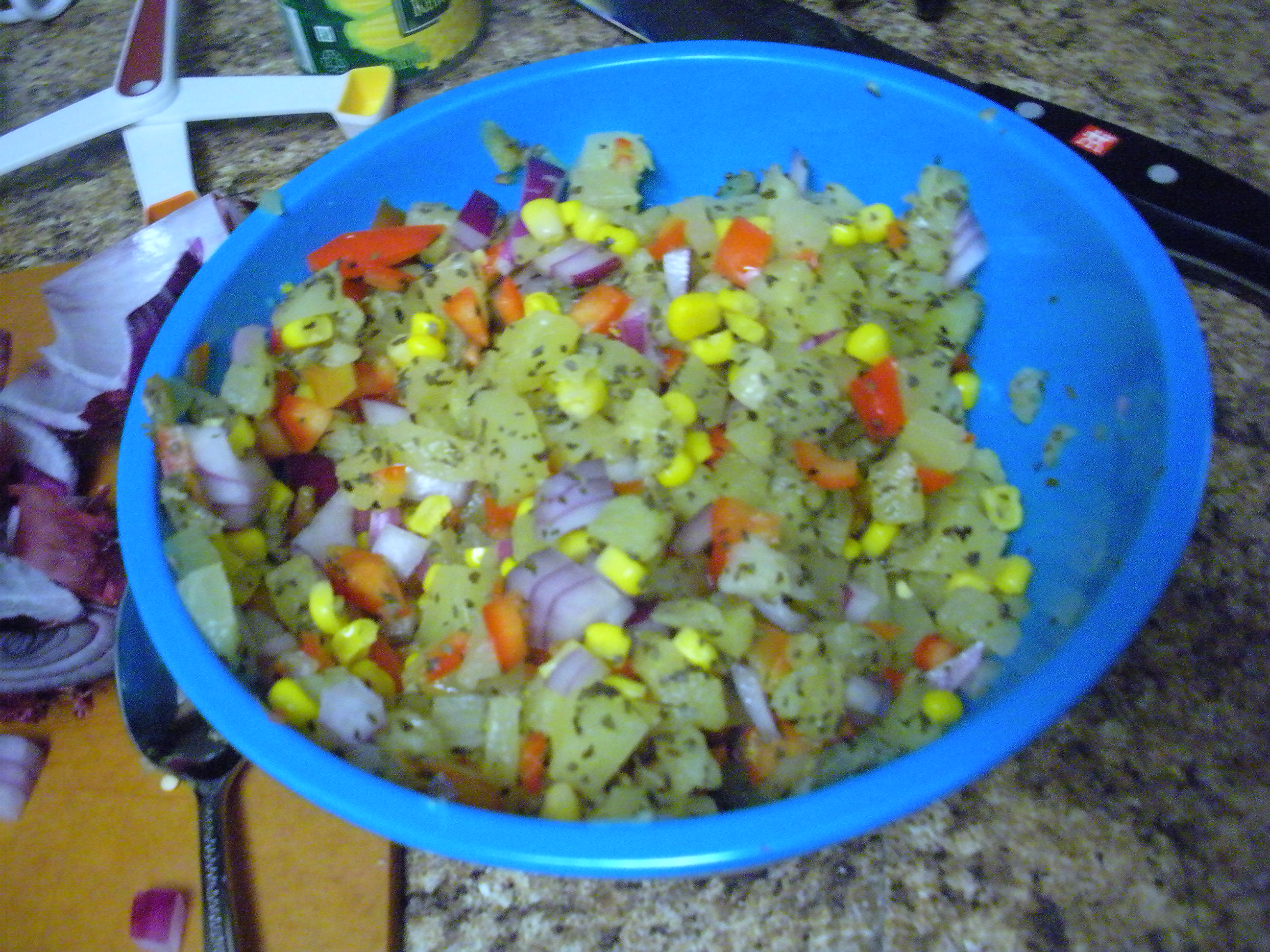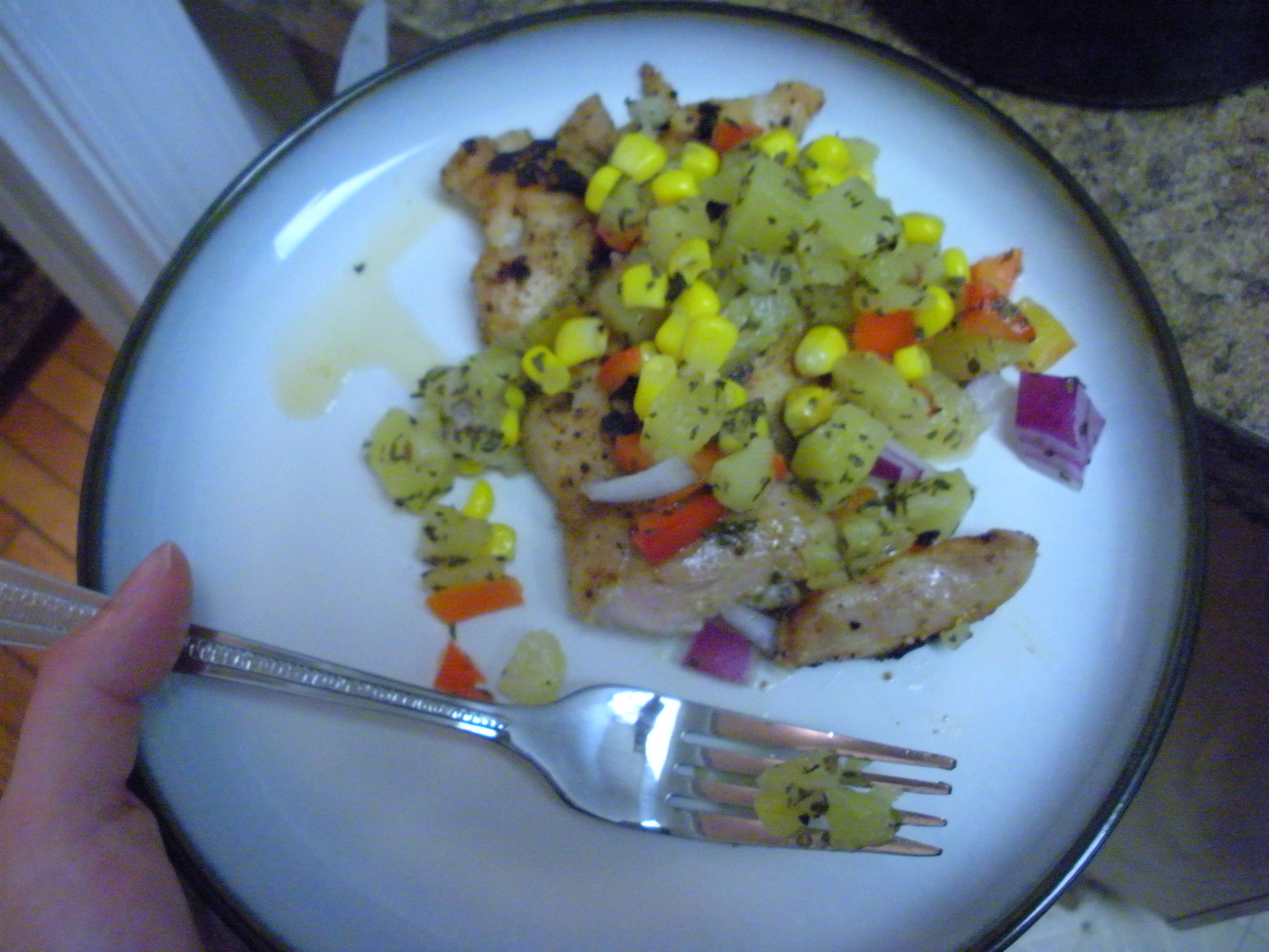 My friend James and I made this Cooking Light recipe recently and did basically every thing wrong possible, but it still came out great. We used canned pineapple and corn instead of fresh, used some garlic pepper grinder thing because we didn’t have garlic powder, and dried basil. Even with all that, we couldn’t wreck it.