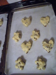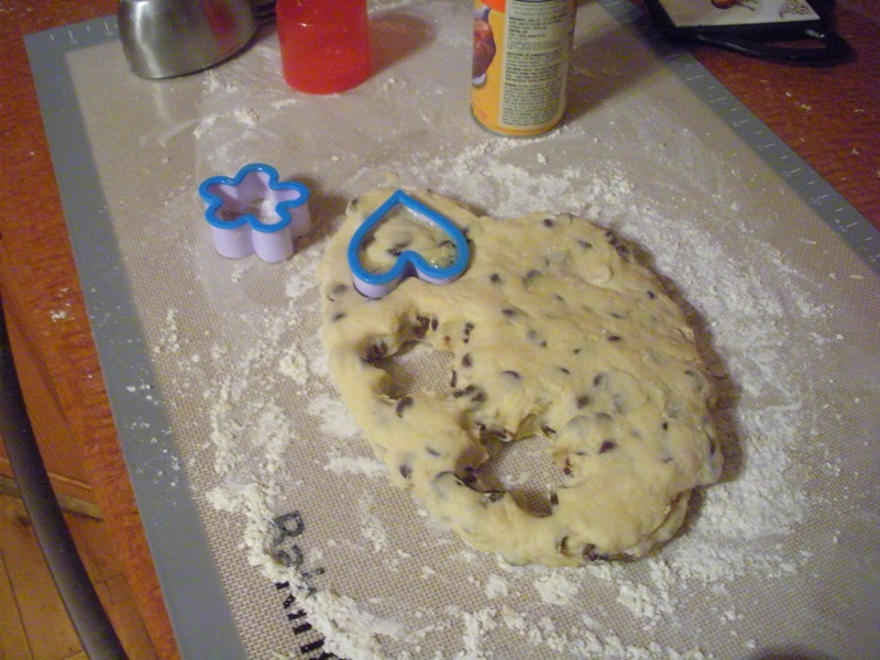 The book is full of cute foods, lots of pink things, and recipes varying from “dead simple” to “not very hard.” I was therefore quite surprised when my first go at these scones produced some awful unattractive (although still tasty) blobs. The dough was just way, way too sticky to shape in any sort of Princess-appropriate way.