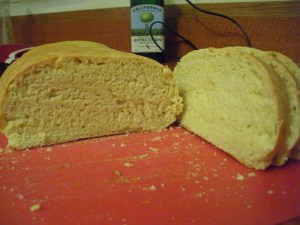 Cool on a wire rack, and enjoy. Kyle liked this, said there was just the right amount (very little) of crunch to the crust. It’s soft enough that, in slicing it to be sandwich bread, you have to be careful not to squish the whole loaf. I’ll definitely be making it again, probably trying it as dinner rolls next time?