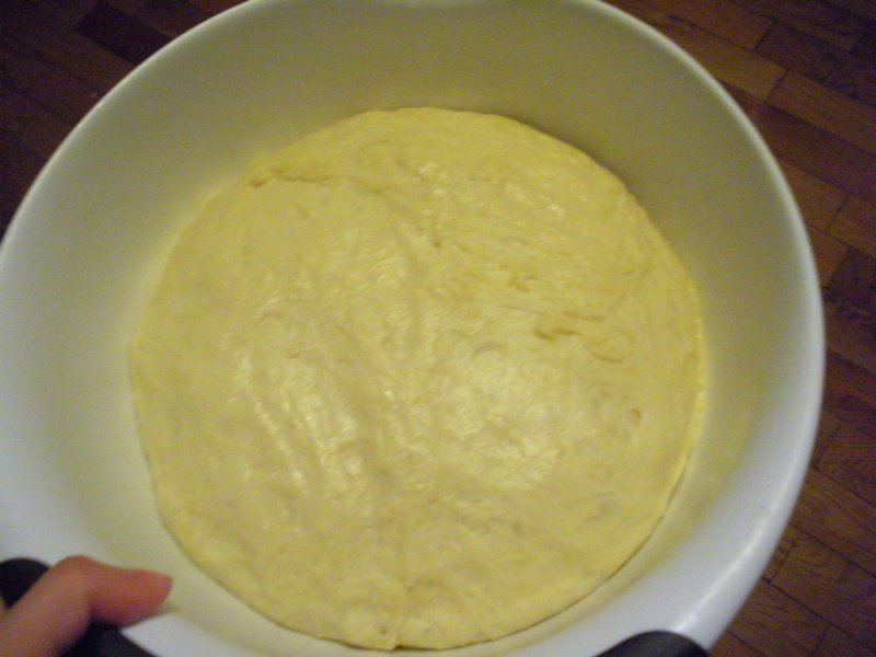 Form the dough into a ball and place it in the greased bowl, flipping once so that the top gets greased too. Cover, and let rise for an hour.