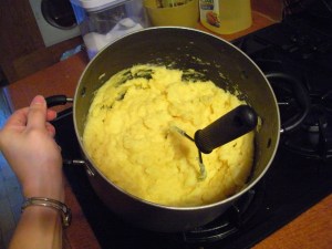 The amount of filling I made was about twice as much as I needed for the amount of dough I made. It was roughly four people’s worth of pierogies, plus the extra filling. I’ll cut the filling recipe in half below, so it should work out about right.