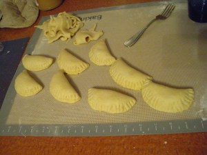 Fold the dough over into a half-circle and crimp the open edge with a fork.