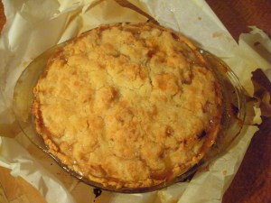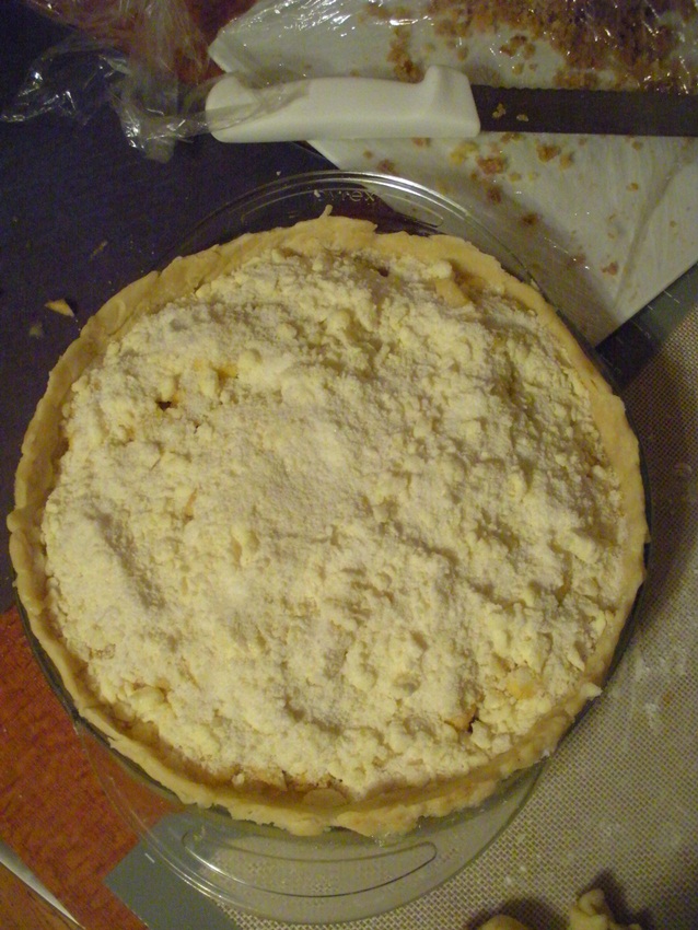 I’ve never been super confident when making pie crust (I usually just buy them), so I was relieved that this pie has a streusel top, so at least I only had to make one crust. The bottom crust turned out to be pretty easy, actually, and the coworkers I shared the pie with thought it was good. Success!