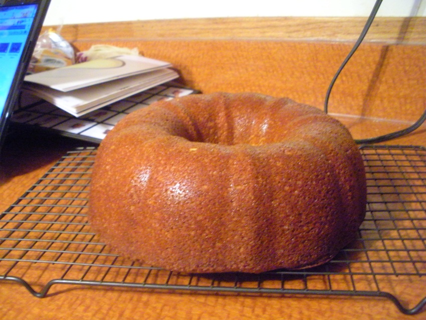 Preheat the oven to 350 degrees. Grease and flour a 9″ bundt pan. I just got an oven thermometer this weekend. And got some jeans hemmed for the first time. I feel so oooold!