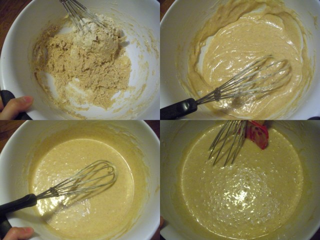 In a separate bowl, stir together the flour, baking soda, salt, cinnamon, and cloves. Alternate adding the egg mixture and the buttermilk to the flour mixture, mixing after each addition. Adding about a quarter each time seemed good.