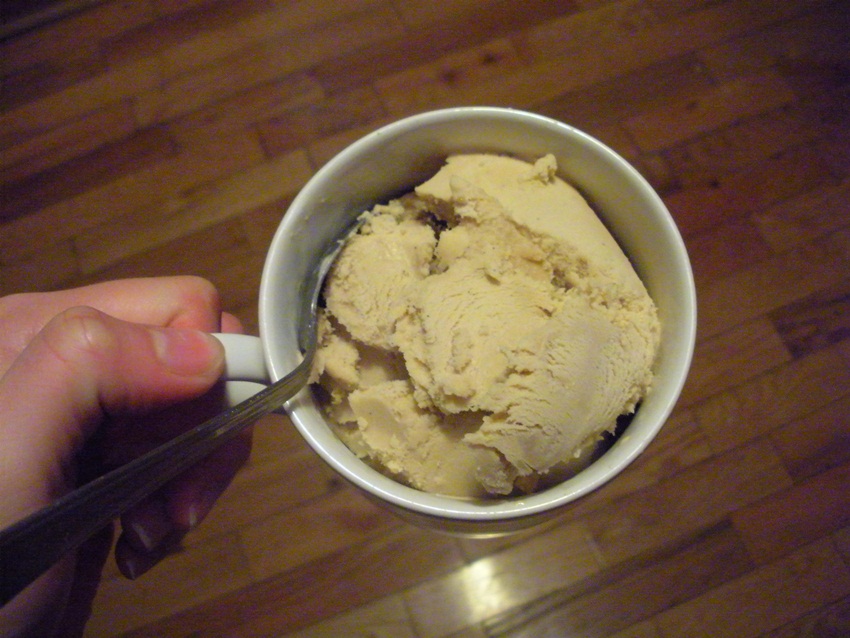 I froze mine in an ice cream maker with a big spoonful of fudge sauce, and it was super good!