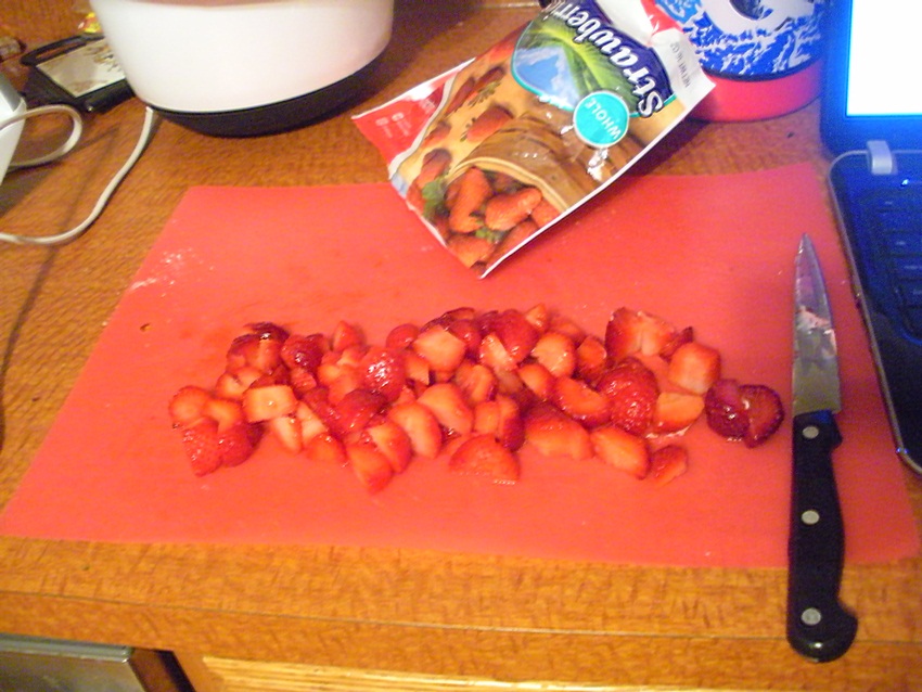 - 1 1/2 cups strawberries, rinsed, dried (or thawed) and chopped