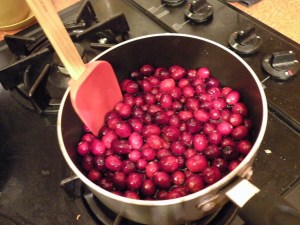 Post robbery, we did manage to pull together a really delicious Thanksgiving. I borrowed a camera and got some pictures. The first recipe I made is a cranberry salsa recipe I got from my mother several years ago, and have been making every year since. I love it! It’s tangy, sweet, and just in every way delightful.