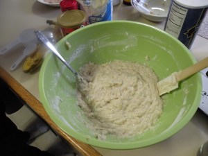 I’ve had this recipe bookmarked for well over a year as a thing to make with Jon. He just moved to a new house with a nice big kitchen, and the time had come! They were super delicious – wish we’d made them ages ago! Jon’s vegan, so we made some substitutes that I’ll list in the ingredients…