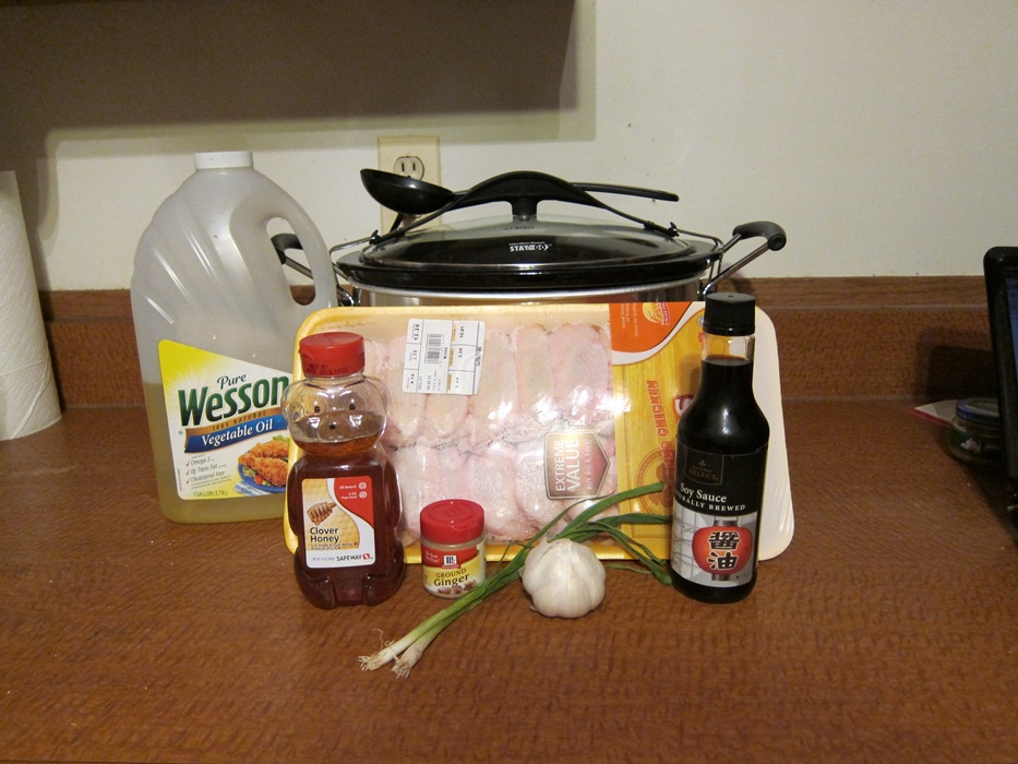 Combine all ingredients except wings in crock pot and stir together. Add wings and toss to coat. Cook on low 6-8 hours.