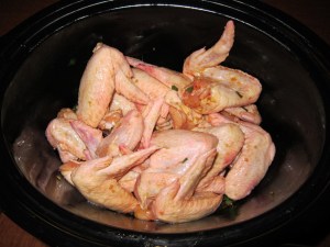 It seems like very little sauce for the amount of chicken, but you can get a thin coating on all the wings at the start, and as they cook moisture comes out of the wings which helps each piece get flavored. I cooked mine for 7 hours and they were soft enough to fall off the bone.