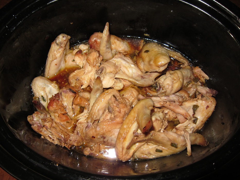 Really all you do is combine everything but the chicken in the crock pot, stir it about for a second, then throw in the chicken as well. Toss for a second to coat, then leave them alone to cool for 6-8 hours on low.