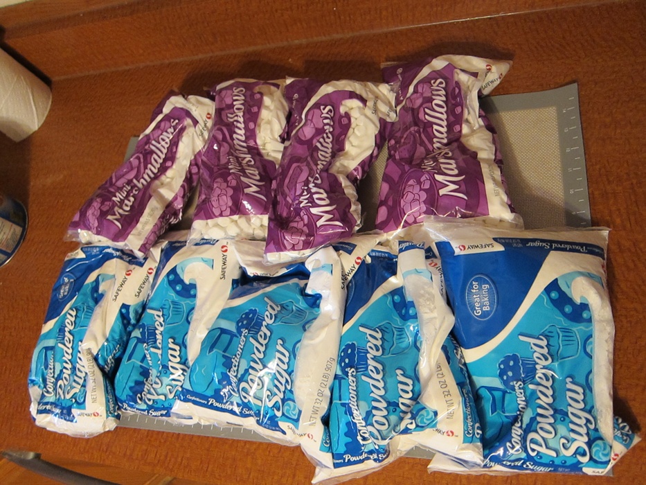 Mine got a bit more ridiculous here, as I made 3 more batches of cake batter, and two of marshmallow fondant. Practice wedding cake!