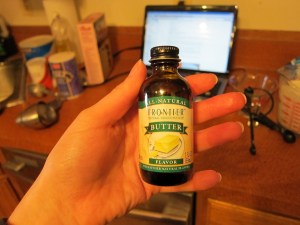 When I first read this recipe, I noticed that the person who wrote it wanted a slightly butterier flavored cake, but used vanilla and almond extracts. I was pretty pleased to find somewhere to use the butter extract I bought a while ago on a whim at Whole Foods to fix that problem.