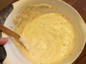 Scrape down the sides of the bowl, then add the egg mixture in 3 or 4 batches, mixing between each. Mix another minute.