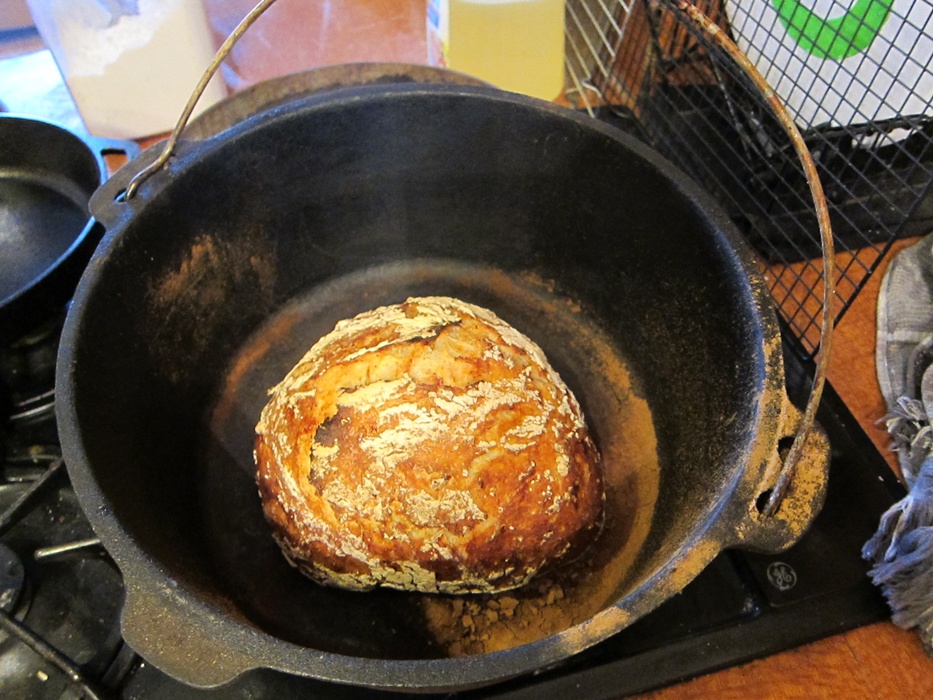 Remove the bread from the hot dutch oven, and cool on a wire rack.