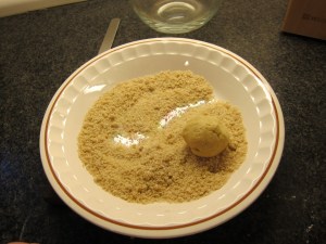 Place the coated balls on the prepared pans, spacing about 2 inches apart.