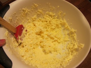 Beat together the cream cheese and butter until light and fluffy. Add the remaining 1 3/4 cup sugar and beat until combined. Add the eggs one at a time, beating after each addition, then the vanilla.