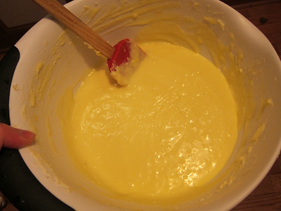 Add the remaining sugar and beat until combined. Add the eggs one at a time, beating after each addition, then the vanilla.