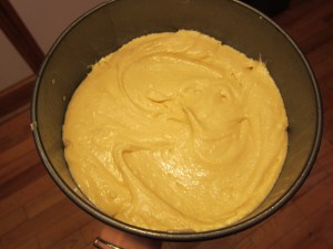 When the syrup is mostly cooled, preheat the oven to 325 degrees. Grease and flour a 9″ springform, or other pan with at least 2″ high sides. Believe me, you’ll want the high sides! Also, line a baking sheet with foil and set aside.