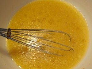 Whisk in the oil, then beat the eggs in one at a time. Whisk in the sugar and salt.