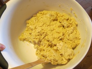 Add the 8 cups of flour a cup or so at a time while stirring. Keep stirring until the dough holds together.