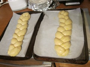 Carefully move your braids to parchment lined baking sheets. Beat the remaining egg and brush it over the loaves, saving any leftover egg.