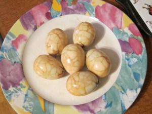 Happy Chinese New Year! Aspiring Bakers‘ theme for this month is Auspicious Dishes for CNY hosted by Wen of Wen’s Delight (details here), and a search for suitable recipes turned up Tea Eggs. I was curious and concerned in equal measure, and pretty much had to try it!