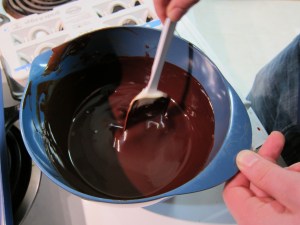 Make the brownie layer by first melting the chocolate and butter in a double boiler or the microwave. Set aside to cool partially.