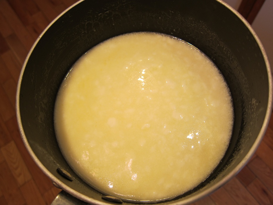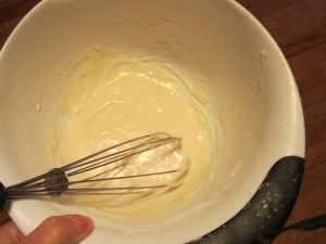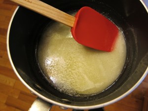 When the butter has melted, add the sour cream and return to the heat until it’s lukewarm, about 105 degrees.