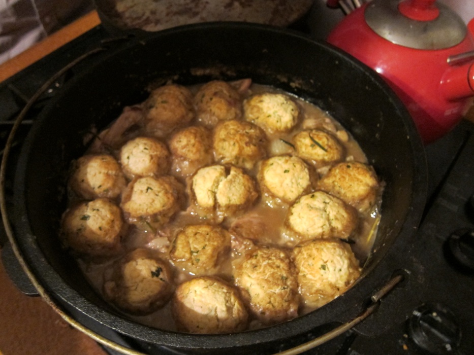Place the dumplings on top of the stew, about half an inch apart.