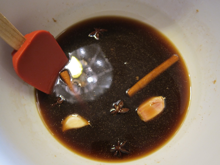- 3/4 cup black Chinese vinegar (I couldn’t be bothered to find this and just combined white vinegar with cider vinegar to kill off some bottles.)
