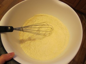 In a large bowl, combine the flour, cornmeal, baking powder, baking soda, and salt.
