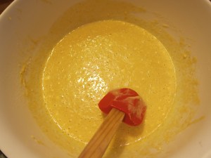 Whisk in the eggs, buttermilk, honey, and melted butter. It’s ok if the mixture stays a bit lumpy.