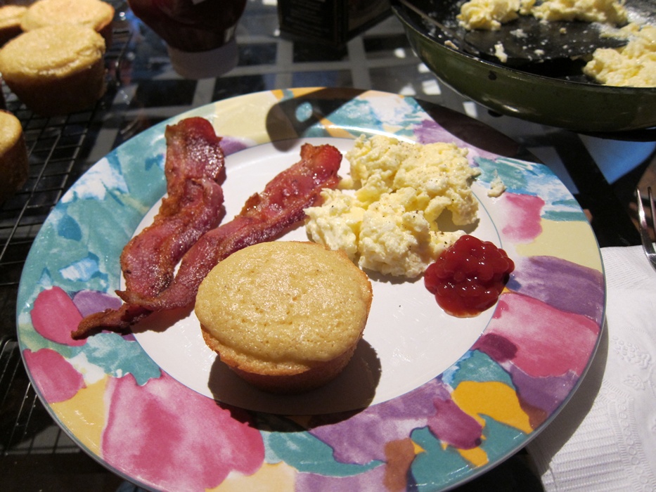 The first time I made these, I forgot the melted butter in the microwave and cooked them without it. They were surprisingly good, considering! I made them again with the butter, and they were, as expected better. They are not as exciting as I’d imagined at first, but after a day to rest the flavor becomes stronger and the top gets the slightly moist, sticky top that supermarket cornbread has, and I love.
