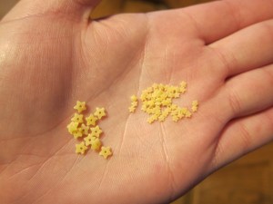 I haven’t had SpaghettiOs in years, but I’d be willing to stack these up against those any day. Besides being quite tasty, I imagine they’re also healthier as they don’t have corn syrup. They’re also more exciting, as I found out that there’s even tinier star pasta than I’d seen before!