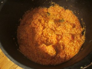 Add the garlic and cook a further 30 seconds, then add the broth and tomatoes. Scrape any browned bits off the bottom and mix in the liquids.